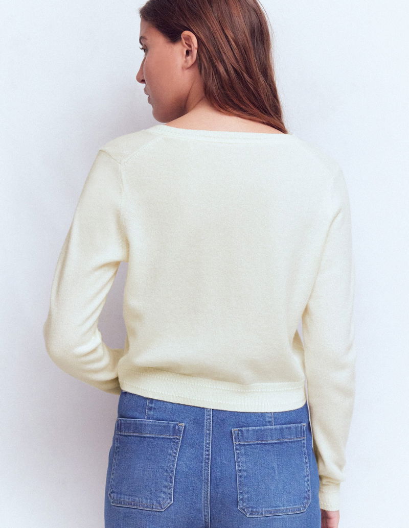 Eva Cashmere Cropped Cardigan-Warm Ivory