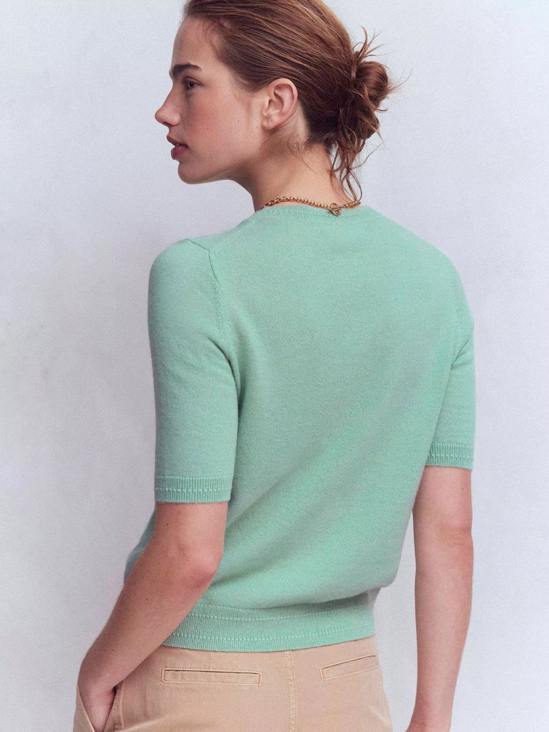 Eva Pure Cashmere Knit Top, Celadon Blue