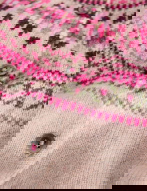 Don't let chilly weather stop you running wild, just wrap up warm in this Fair Isle knitted cardigan, with its colourful trim around the neck. Wear it with jeans and some wellies and you're ready for long country walks (and optional puddle jumping).