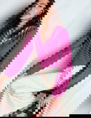 Faux Feather Trim Party Top-Regal Purple, Peony Bloom