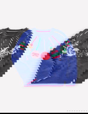 This cheerful jumper brings festive company to the season. Befriend a curious rabbit, or lose yourself in a magical window-scene (complete with sprouts). In a soft knit, the crewneck design features contrast stripy sleeves, neon pops and a metallic finish at the cuffs. Mince pie, anyone?