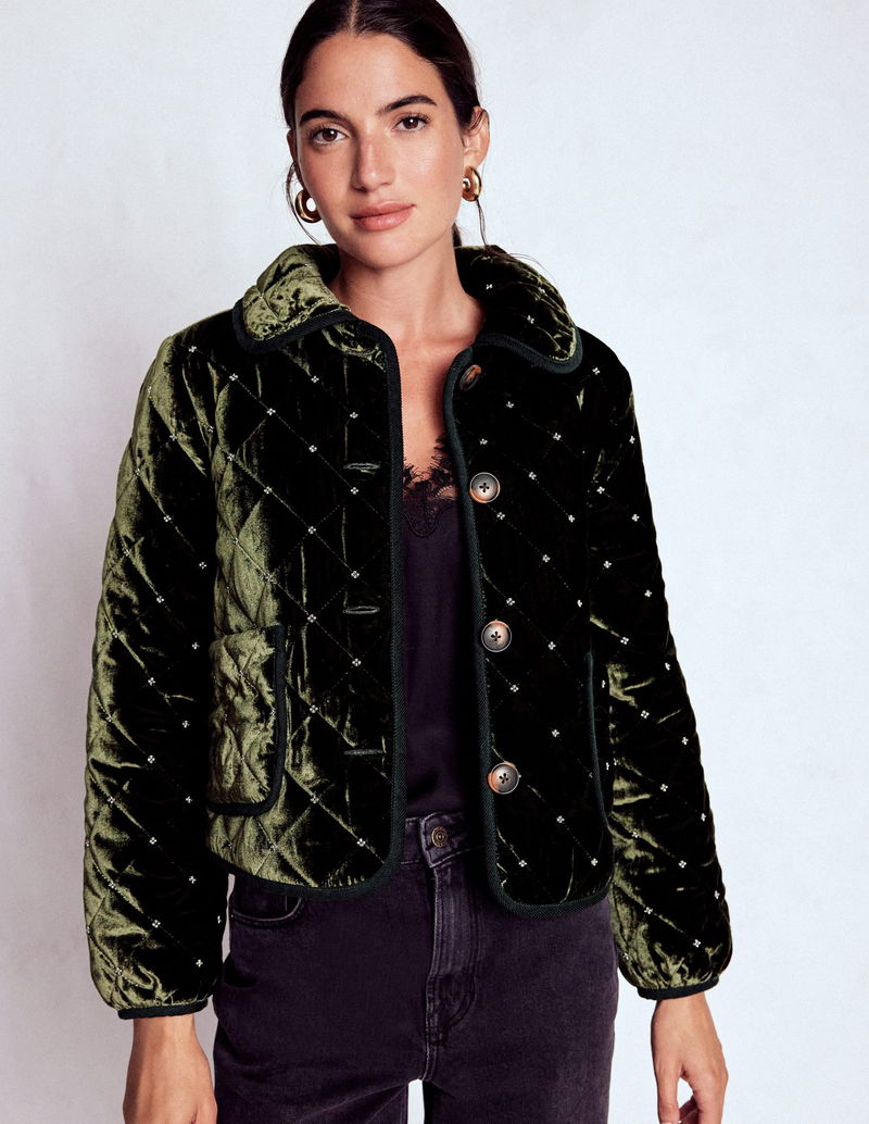 Fitzrovia Quilted Jacket-Kale Leaf, Beads