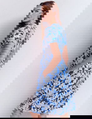We know how satisfying it is to have a do-it-all outfit. That's why we've crafted this fixed wrap dress. Thanks to its flippy shape and just-above-the-knee length, it's flattering and versatile. Supersoft jersey fabric takes comfort to new heights. For a neat finish, a smart shawl neck combines with short sleeves. Bonus: practical pockets are hidden in the side seams.