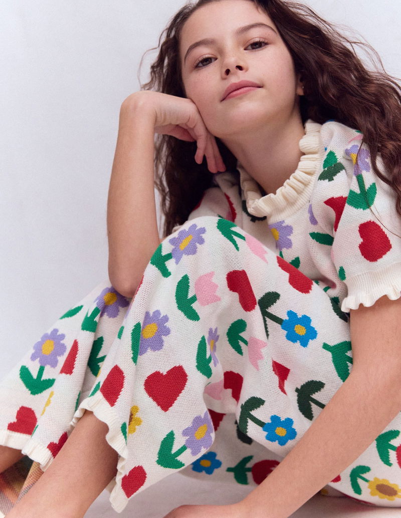 Flared Knitted Trousers-Ecru Marl Sunflower Garden