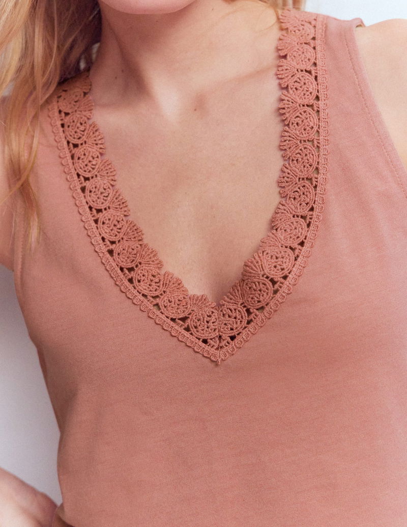 Flora Lace Trim Supersoft Vest-Vintage Rose