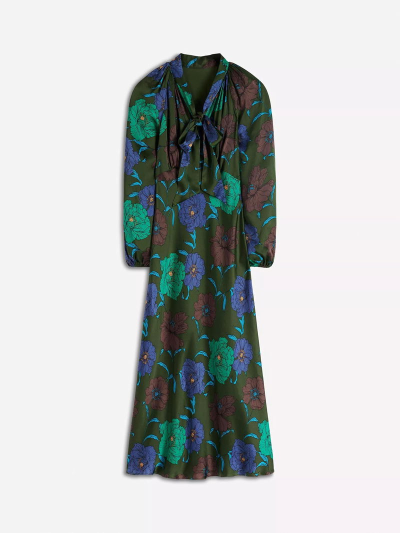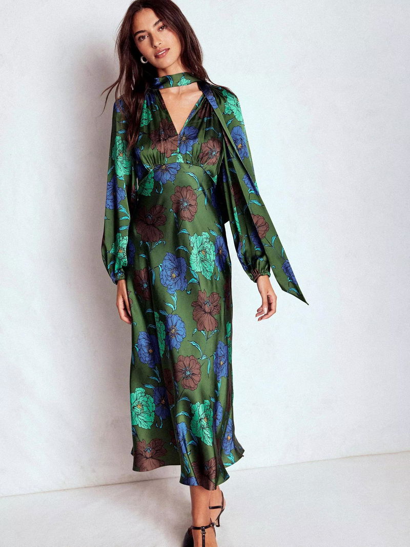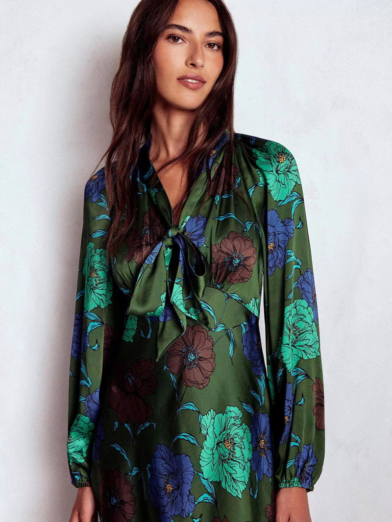 Heading to a winter wedding? The quickest route to best-dressed guest status is this tie neck satin dress. The full sleeves and figure-skimming fit are made to flatter.