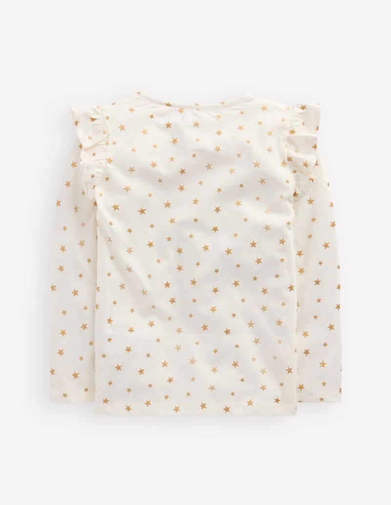 Frill Sleeve Appliqué T-shirt-Ivory Fairies