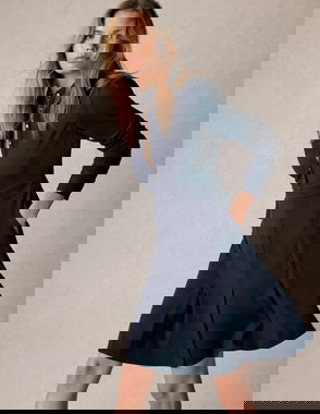Georgina Ponte Dress-Green And Navy