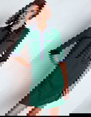 This 60s-inspired shift dress champions classic style with a simple crew neck and buttons down the front. It's made from flattering ponte fabric, which holds its shape while still being effortlessly comfortable to wear.