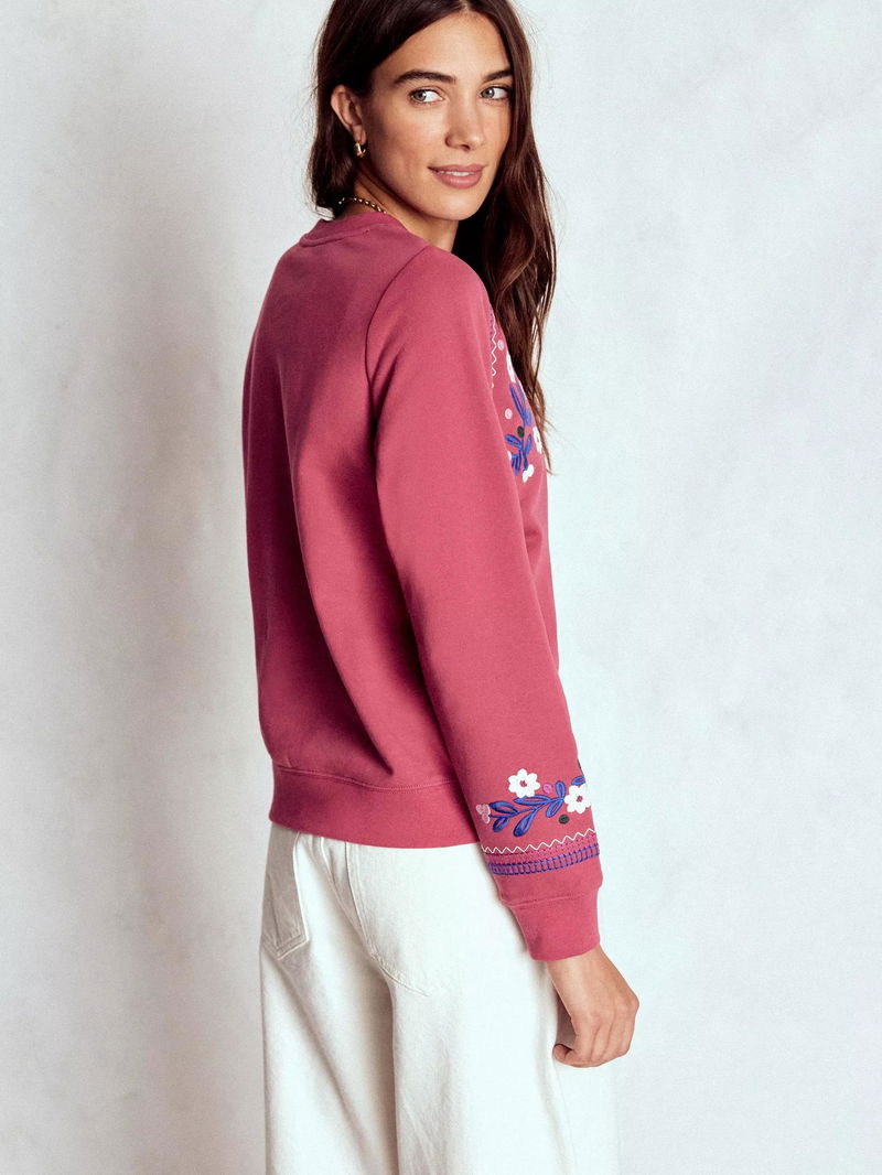 Hannah Embroide Floral Sweatshirt, Red/Multi