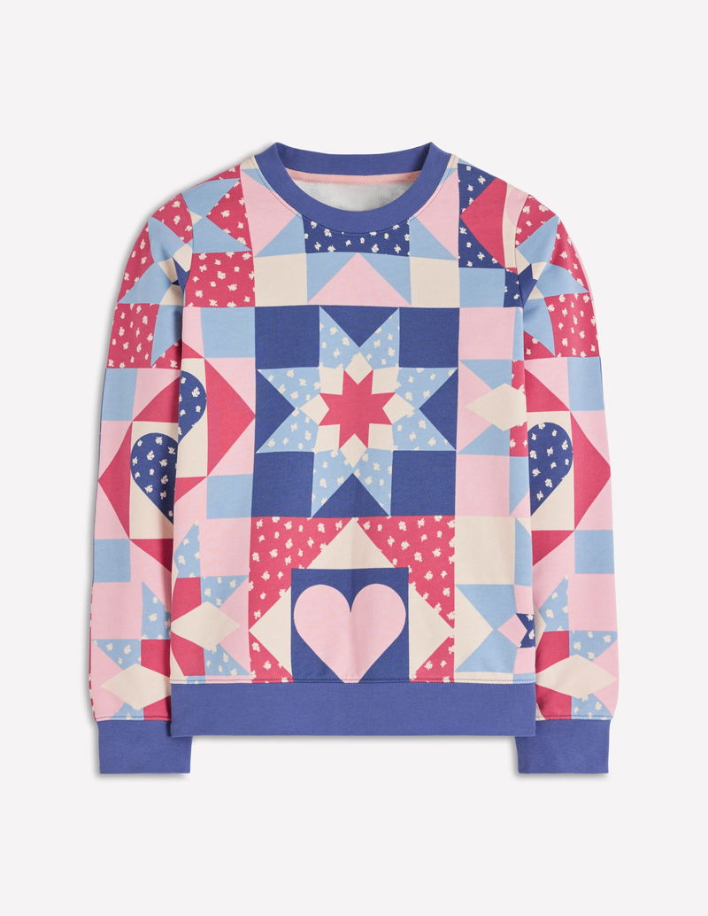 Hannah Printed Sweatshirt-Multi, Heart Patchwork