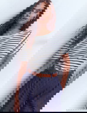 Heather Jersey Breton - Bold Blue/Forest. Heather Jersey Breton. With its anchor-detailed shoulder buttons and boat neckline, this stripy Breton is sailing straight for your shopping basket. Crafted from supersoft pure cotton, it's finished with elegant three-quarter length sleeves.
