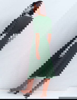 Henley Pointelle Knit Midi Dress, Hunter Green