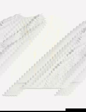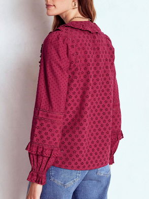 When thinking about our elegant blouse, we started with the idea of a grandad shirt but couldn't resist some extra-special touches. First, we crafted it from pure silk, for supersoftness and drape. Then we added delicate ruffles around the neckline and down the front closure. Finally, to ensure a flattering finish, we gave the semi-fitted shape subtle blouson sleeves and gathers at the shoulders and back neck.