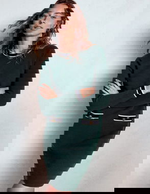 We've taken the best bits of our favourite dresses and made them into a piece ready for autumnal days. This style is knitted for warmth, while the contrast stripe details add a hit of preppines.