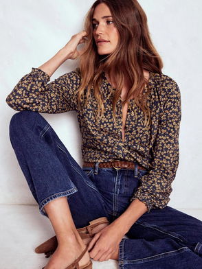 Crafted from supersoft, drapey fabric, this wear-with-everything top isn't just versatile, it's distinctive too. The crew-neck and semi-fitted shape are understated, letting the blouson sleeves take centre stage. They have gathers at the shoulders combined with pleats at the cuff to deliver plenty of puff. Available in a range of easy-to-style shades, this one has everyday dressing sorted.