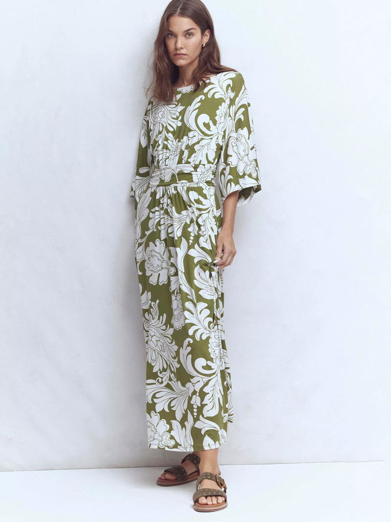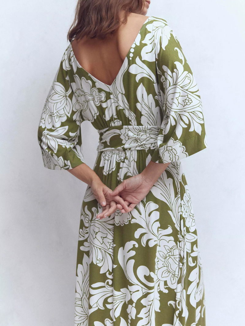 Imelda Abstract Midi Dress Containing LENZING™ ECOVERO™ Viscose, Olive