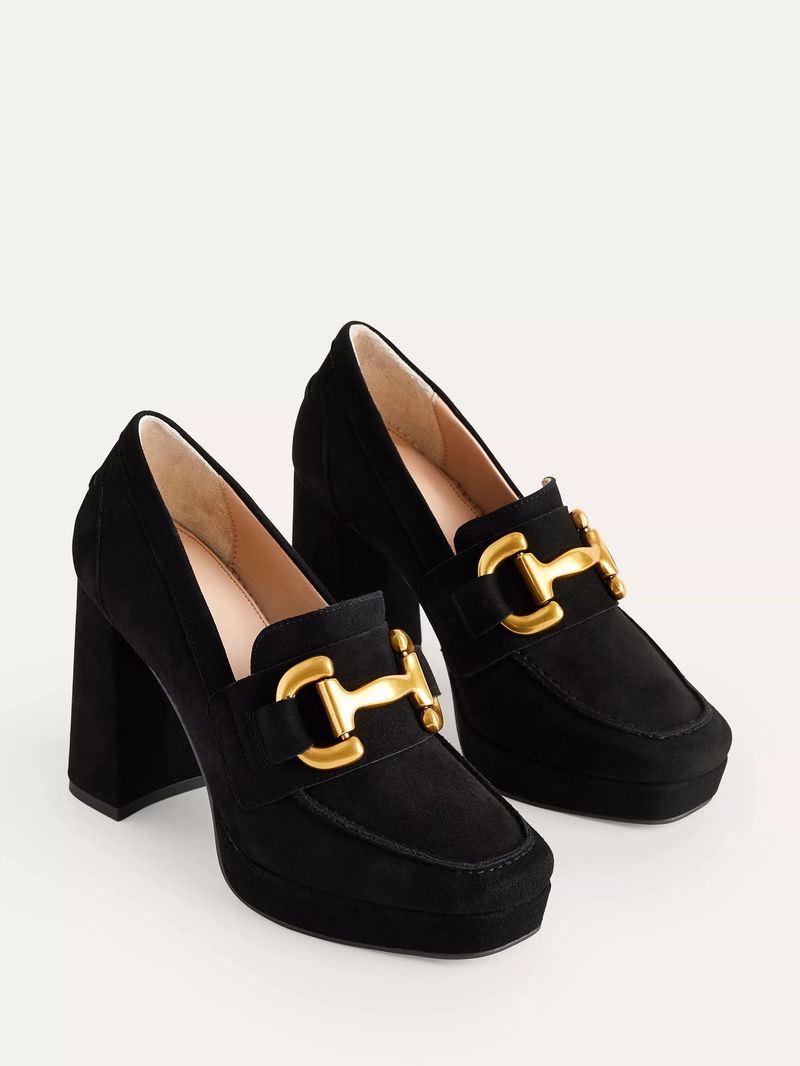 Set on a block heel, they are shaped to a smooth rounded-off square at the toe for a look that will take you through the day and into the night.
