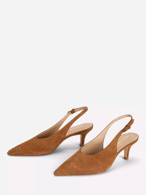 Description: These Iris slingbacks have a pointed toe and smart snaffle detailing. Thanks to their chunky heel, they pass the dinner-to-dancing test, too. Materials: Upper: suede, Sole: synthetic, Lining: leather Product Code: 114068916