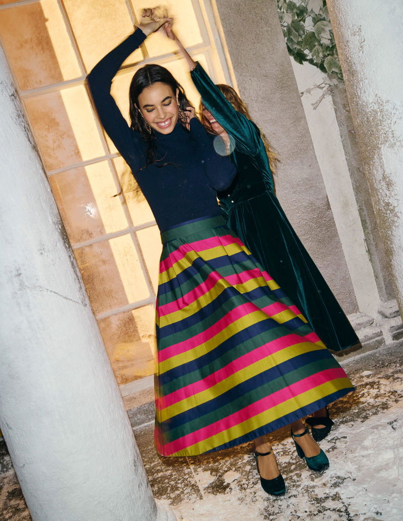 Isabella Cotton Sateen Skirt-Pine, Multi Stripe