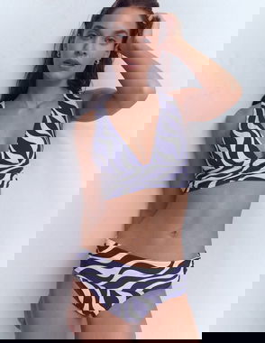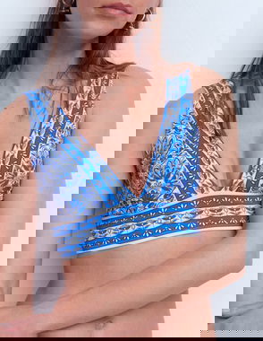 Contrasting patterned or block-coloured panels create the Ithaca halterneck bikini top's flattering features. Cut in a deep V, the tie straps ensure your perfect fit. less - This is a clearance item - Main 80% recycled polyamide 20% elastane, Lining 100% recycled polyester - Machine washable - The polyamide and polyester in this garment is made from recycled materials - Lightly padded removable cups for a smooth shape - Halterneck straps offers light bust support - Halterneck ties - Plastic clasp fastening at centre back - This is a clearance item - Main 80% recycled polyamide 20% elastane, Lining 100% recycled polyester - Machine washable - The polyamide and polyester in this garment is made from recycled materials - Lightly padded removable cups for a smooth shape - Halterneck straps offers light bust support - Halterneck ties - Plastic clasp fastening at centre back