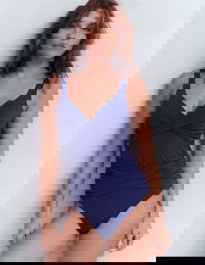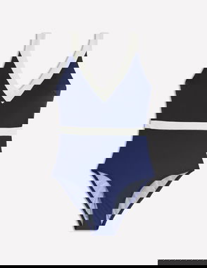 With an adjustable halterneck and panelled sections, the Ithaca swimsuit is complete with removable lightly padded cups for shape and support. Goes well with clear blue skies and golden sand.