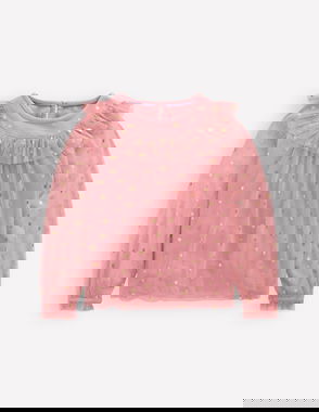 This is a dress of two halves. The top is made from comfy jersey and the bottom has an extra-full tulle skirt for spinning around in.