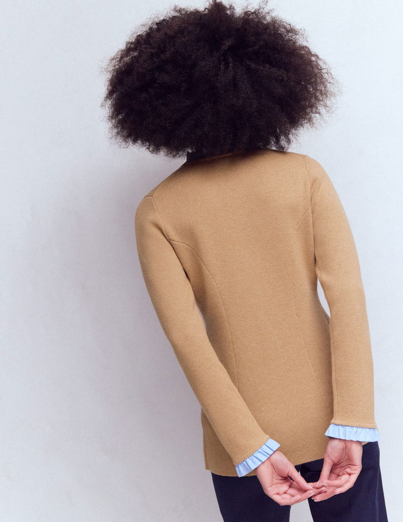 Joanna Fitted Knitted Jacket-Camel Melange