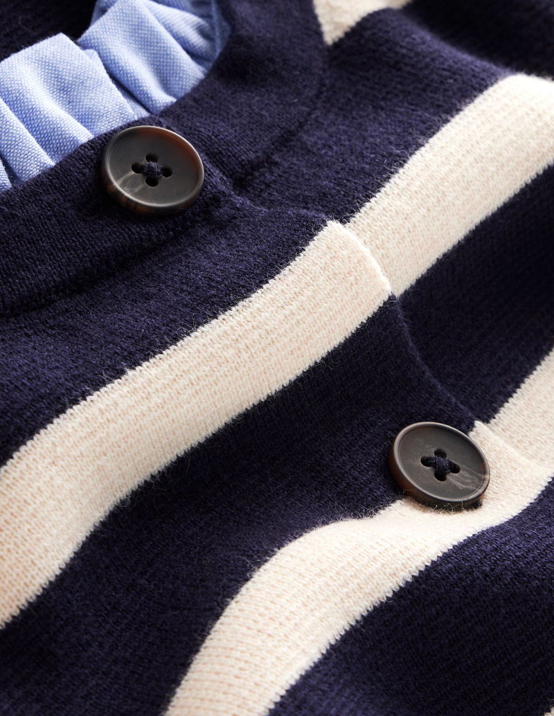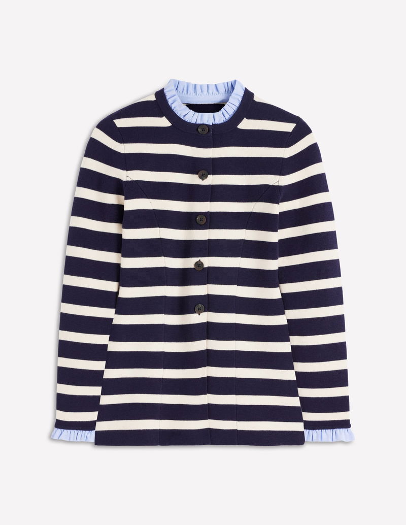 Joanna Fitted Knitted Jacket-Navy/ Warm Ivory Stripe