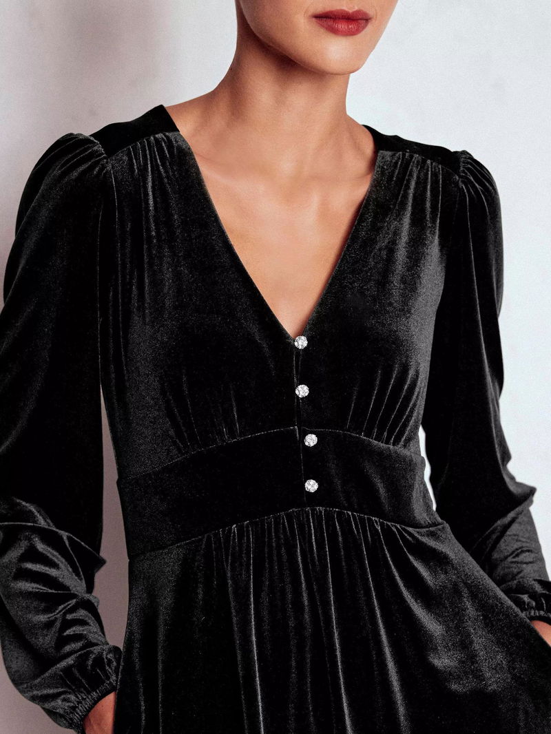 You can never go wrong with a tea dress. This long sleeved mini dress by Boden has a V-neckline whilst the plain colour means it goes with all your accessories.