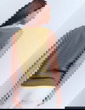 Breathe a little fresh air into your wardrobe with this versatile, pure linen top, complete with capped sleeves and mock-horn buttons on the shoulders. The open, crew neckline makes it breezy and cool for balmy summer days, and the gently curved hem keeps things classic. Choose from a range of bright, bold colours.