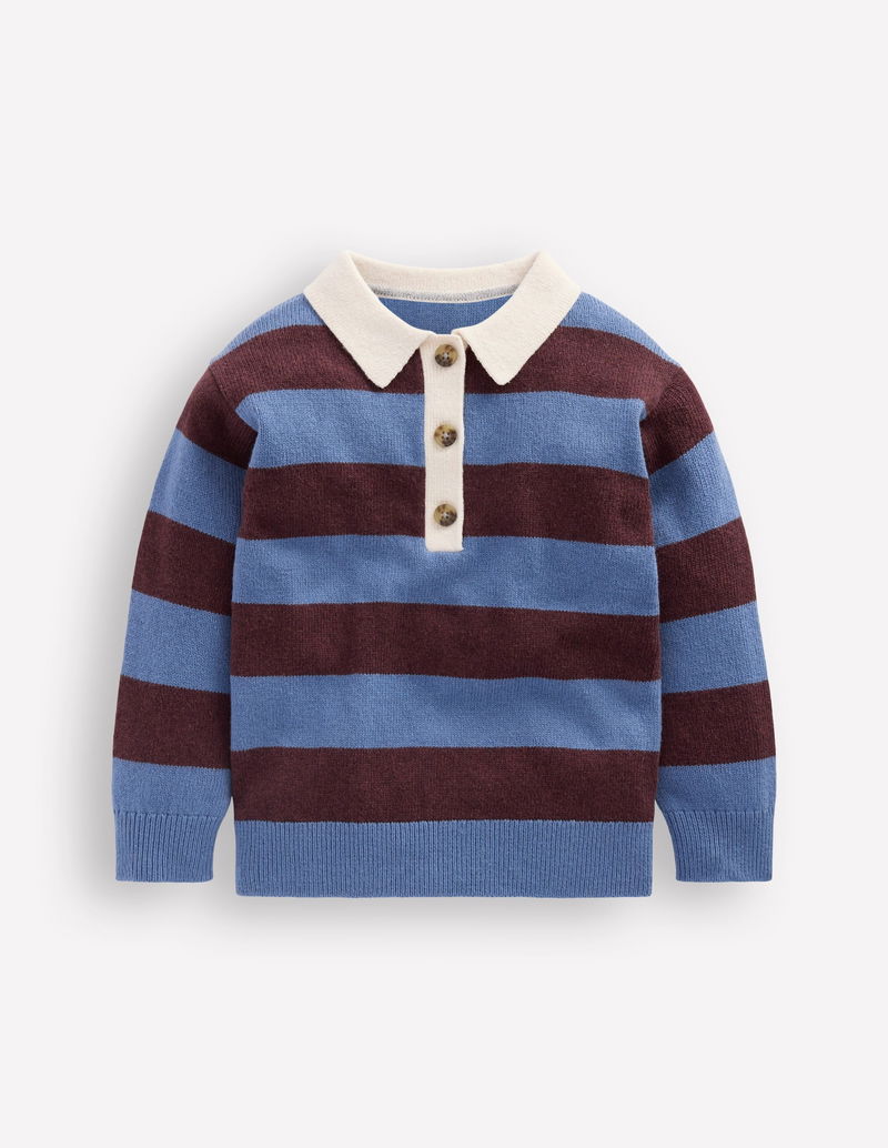 Knitted Rugby Jumper-Blue And Brown Stripe