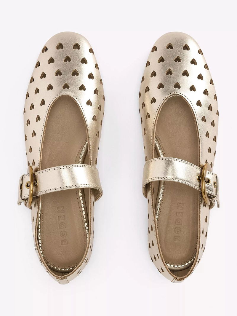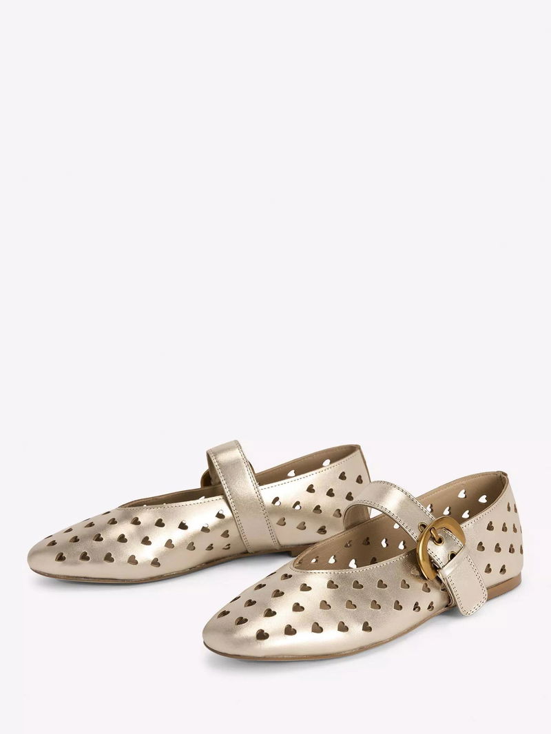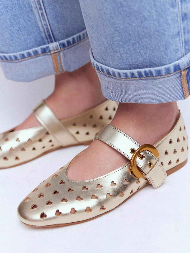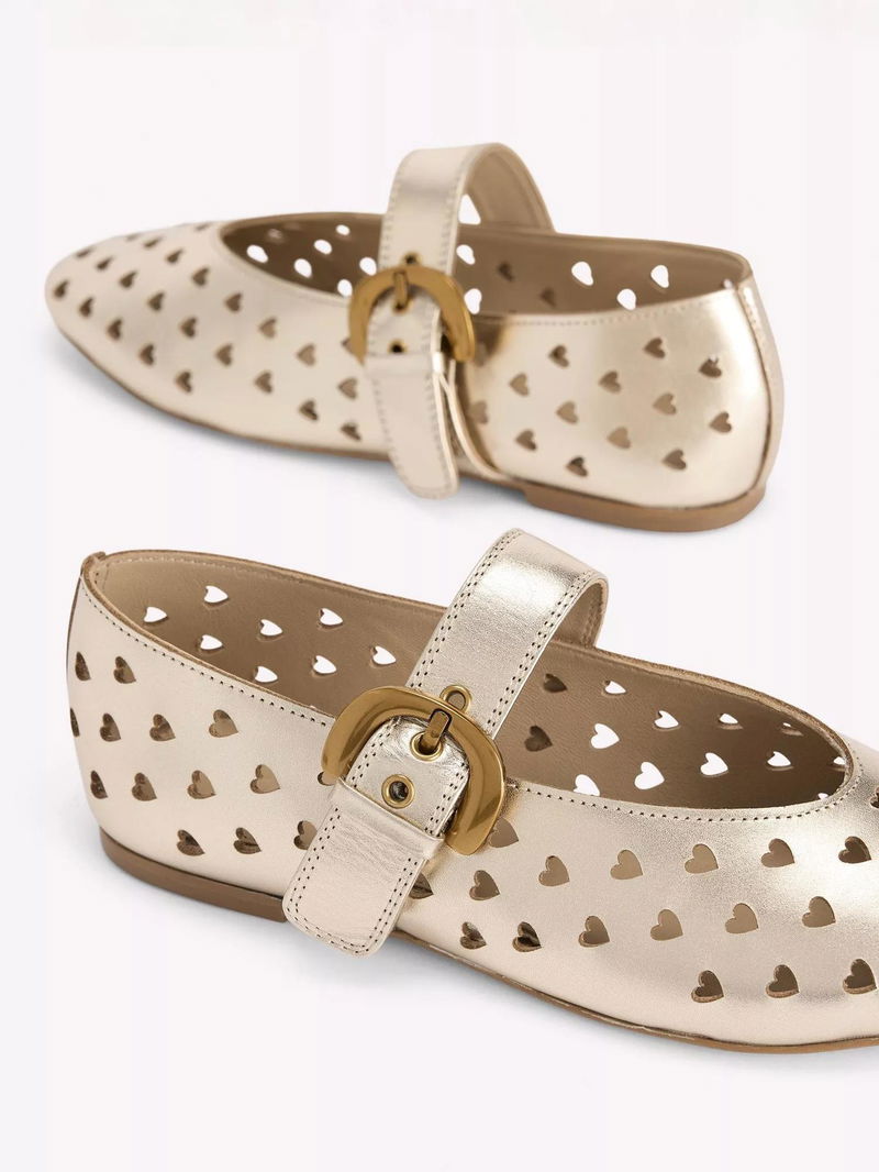 A dreamy Mary Jane and ballet pump hybrid that makes for one irresistible shoe. Choose from suede leopard print or a statement-making gold leather cut-out design.