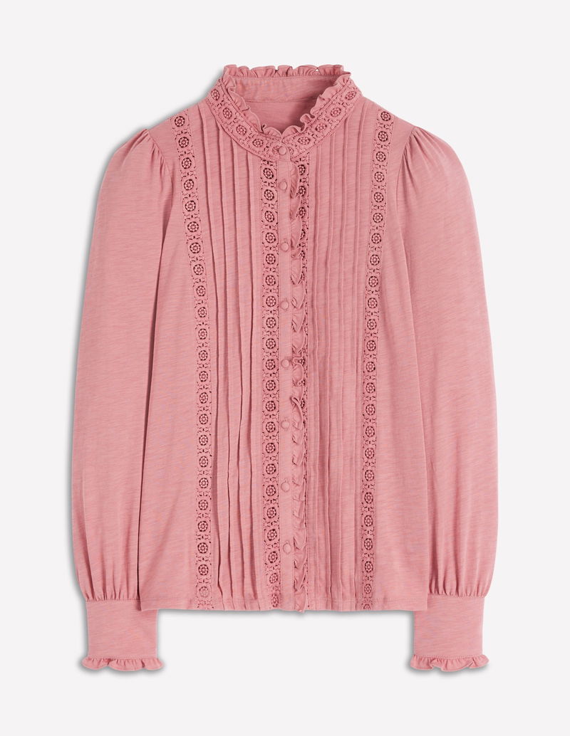 Lace Detail Jersey Shirt-Vintage Rose
