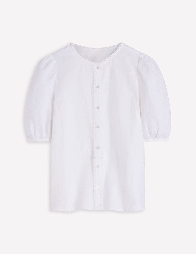 Leah Short Sleeve Linen Top-White
