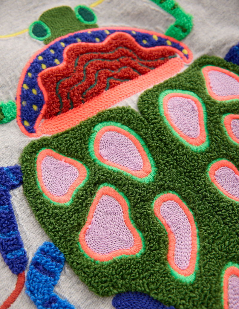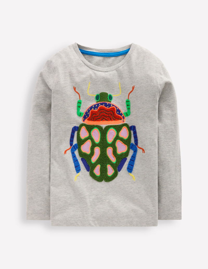 Long Sleeve Appliqué T-shirt-Grey Insect