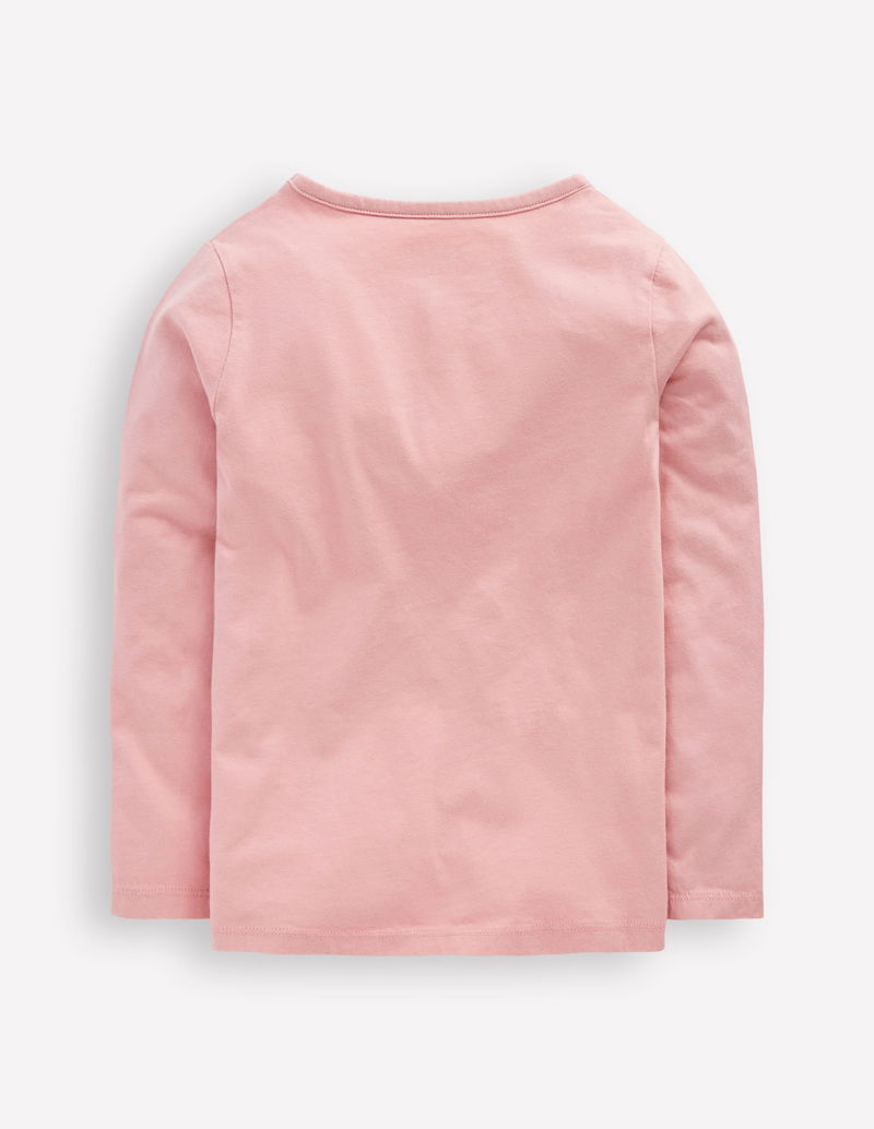 Long Sleeve Appliqué T-shirt-Vintage Pink Weather Fox