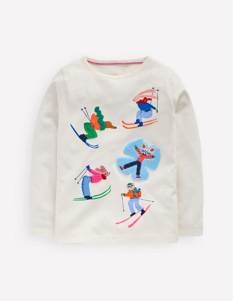 Long Sleeve Bouclé T-shirt-Soft Ivory Skiers