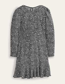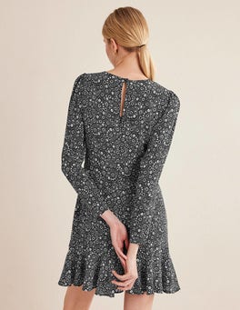 The panelled waistband on this flippy dress hits at the natural waist to create definition. Long sleeves balance the thigh-skimming length, making it appropriate for everyday wear.