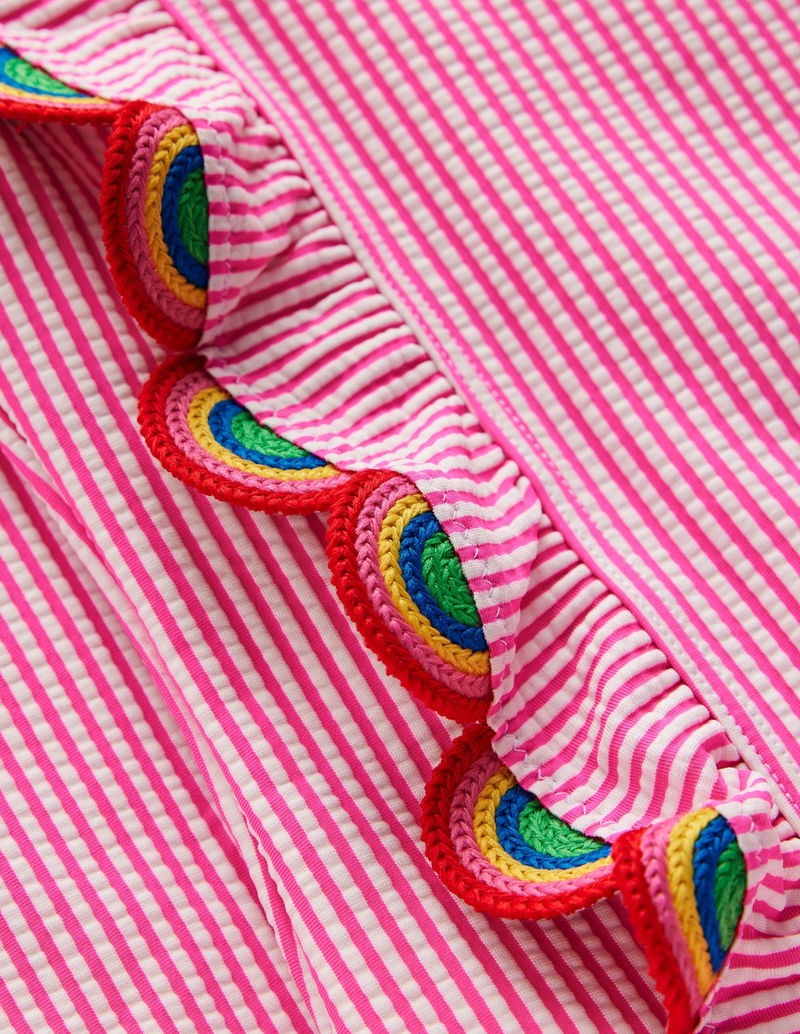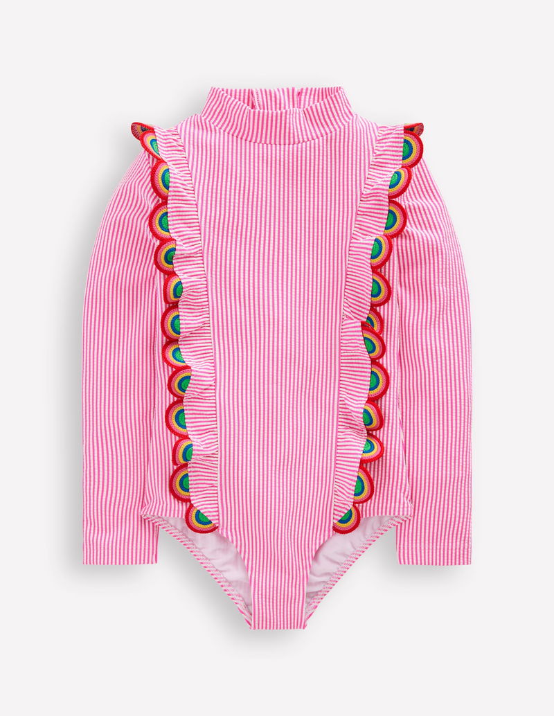 Long Sleeve Frill Swimsuit-Pink Glo Stripe Rainbow
