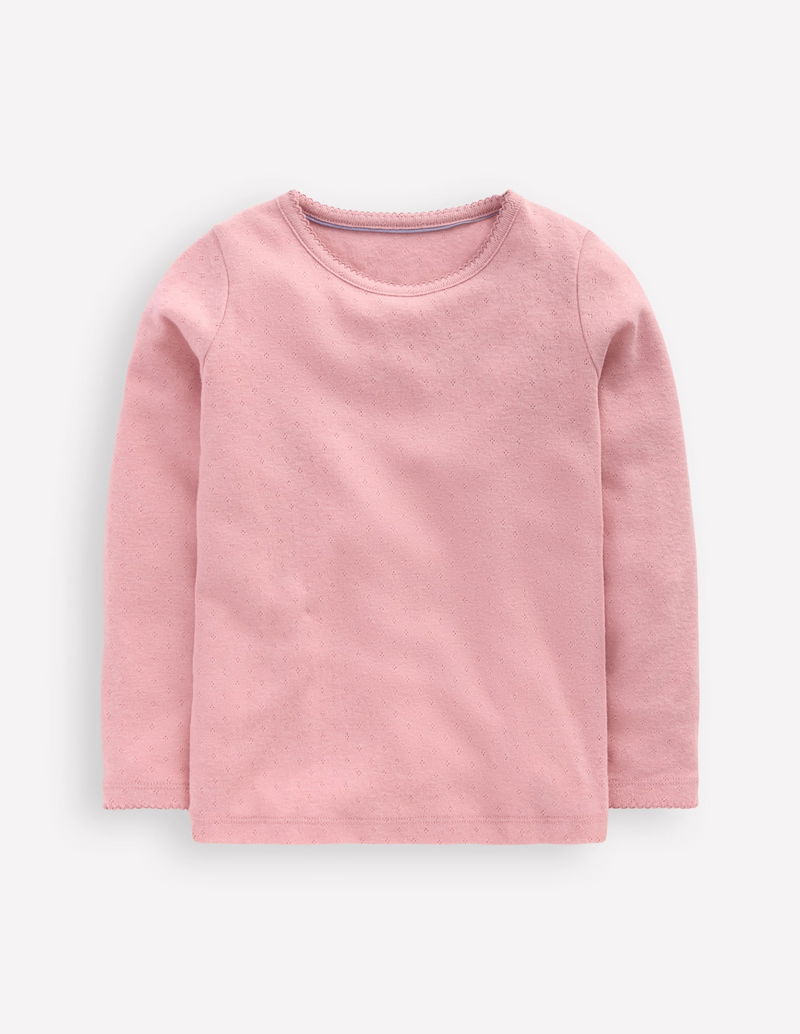 Long Sleeve Pointelle Top-Pink