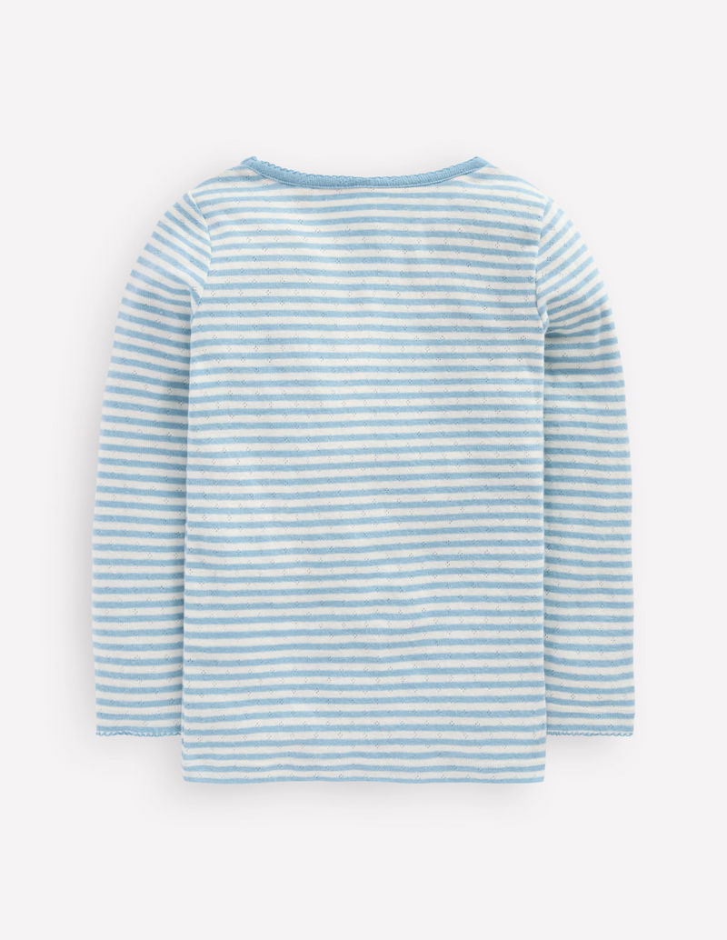 Long Sleeve Pointelle Top-Vintage Blue Stripe