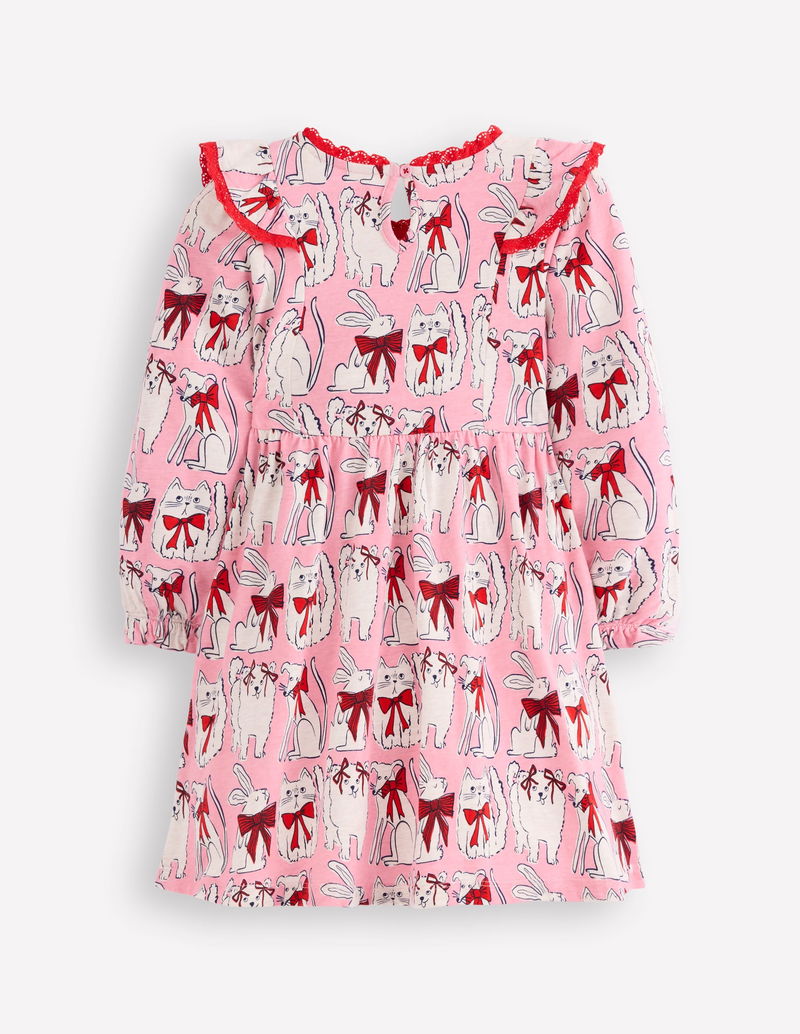 Long Sleeve Ruffle Dress-Bubblegum Pink Favourite Pets