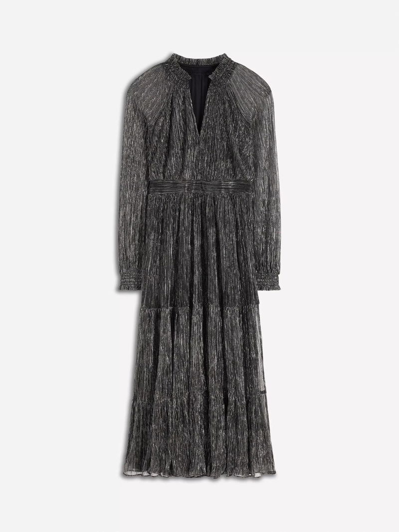 Lucille Stripe Long Sleeve V Neck Smock Midi Dress