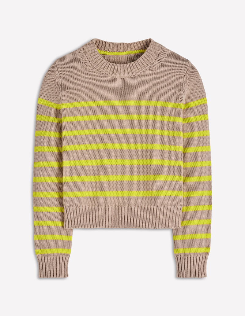 Lucy Chunky Cotton Jumper-Camel Melange, Neon Stripe