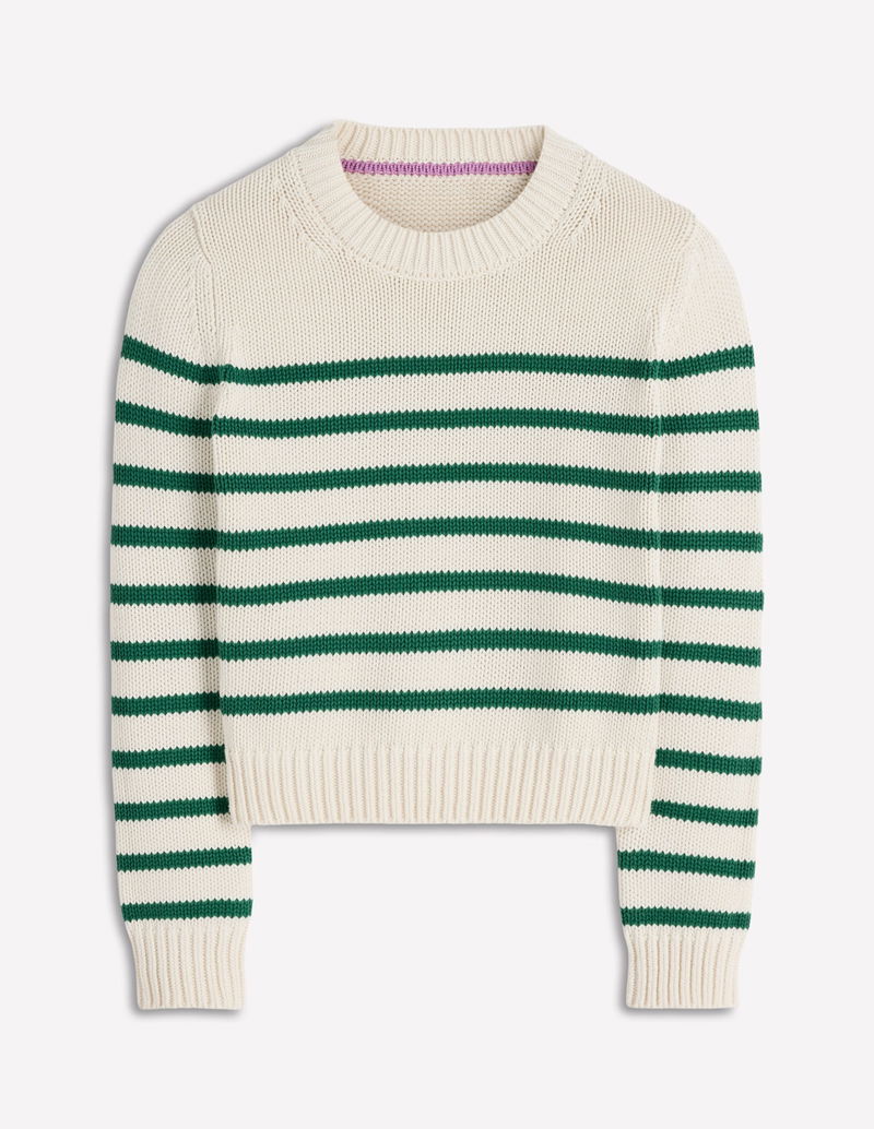 Lucy Chunky Cotton Jumper-Ivory And Jewel Green Stripe