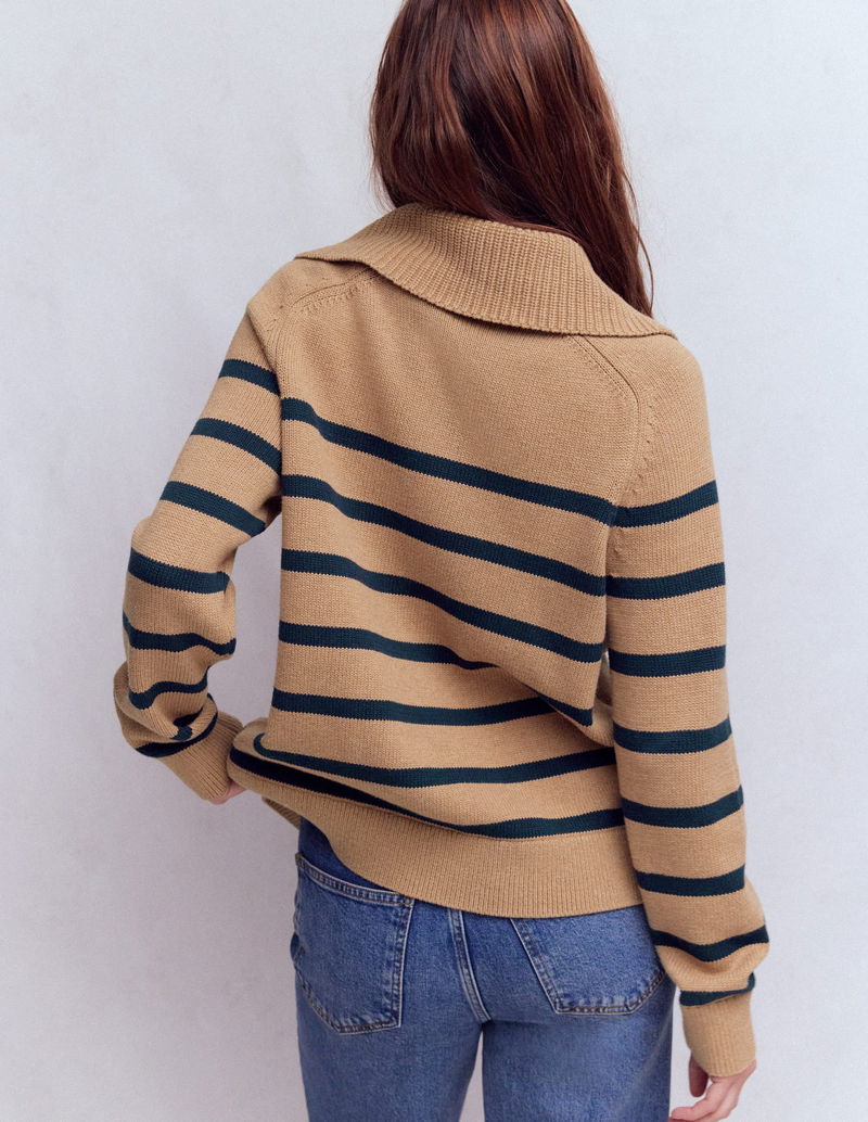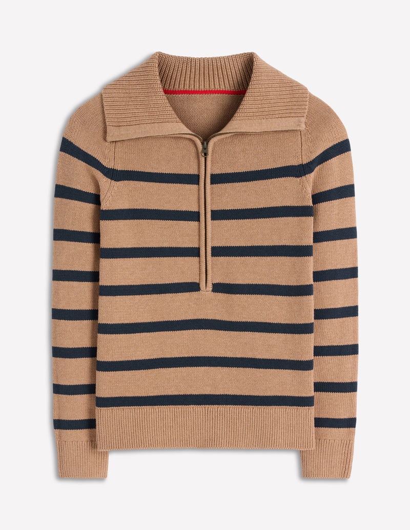 Lucy Half-zip Jumper-Camel Melange, Navy Stripe