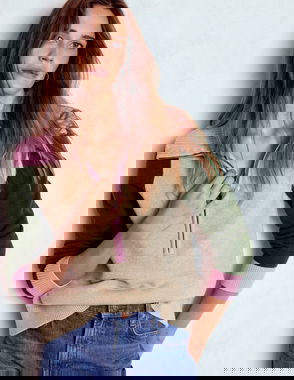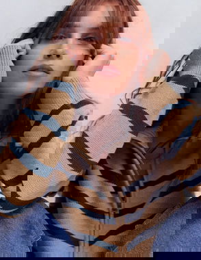 Lucy Half-zip Jumper-Camel Melange, Red Stripe
