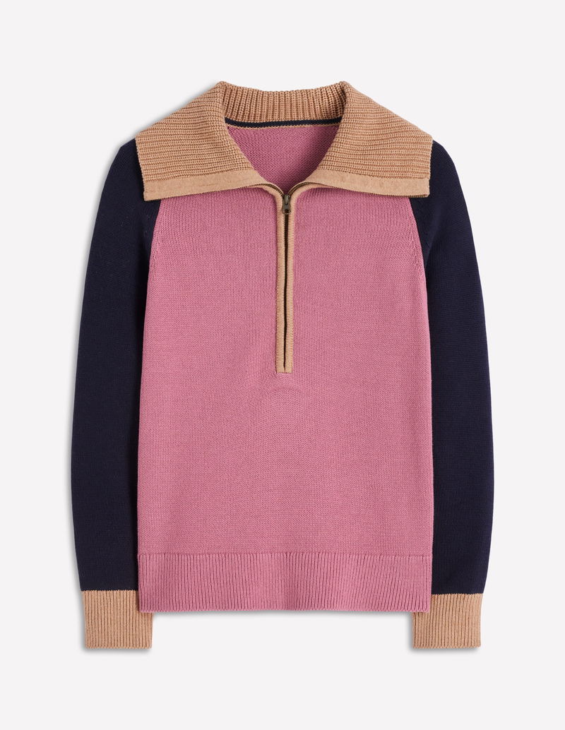 Lucy Half-zip Jumper-Pink Heather, Navy