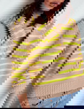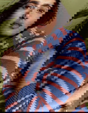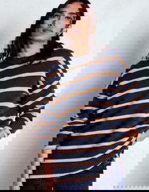 Lucy Oversized Cotton Jumper-Ivory, Red Stripe